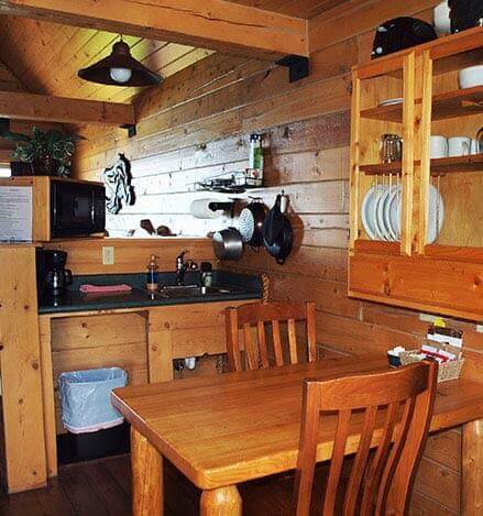 Relax in our luxury cabins with a fully equipped Kitchenettes, large smart flat-screen TV, covered porch with gas grill, and private lawn with stunning bay views.