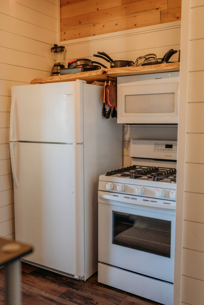 - Full Kitchen with full Refrigerator, cooking utensils, including pots and pans, with place settings